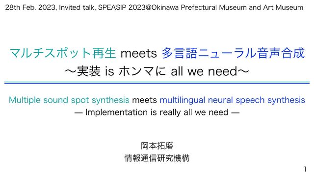 [SPEASIP 2023招待講演] マルチスポット再生 meets 多言語ニューラル音声合成 ~実装 is ホンマに all we need~