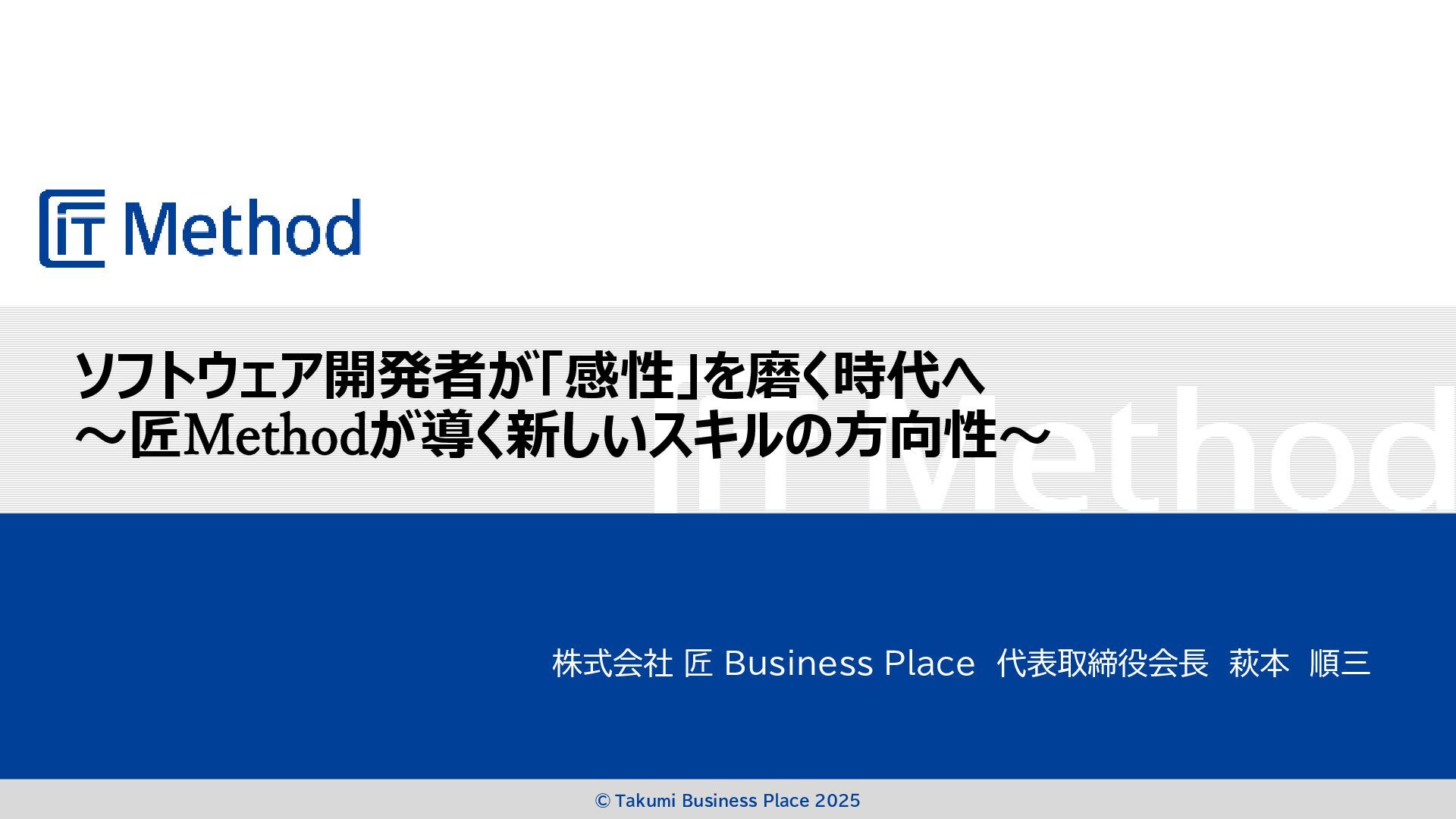 ソフトウェア開発者が「感性」を磨く時代へ〜匠Methodが導く新しいスキルの方向性 / The Era of Software Developers Cultivating “Sensitivity” ~ The New Direction in Skills Guided by the Takumi Method ~