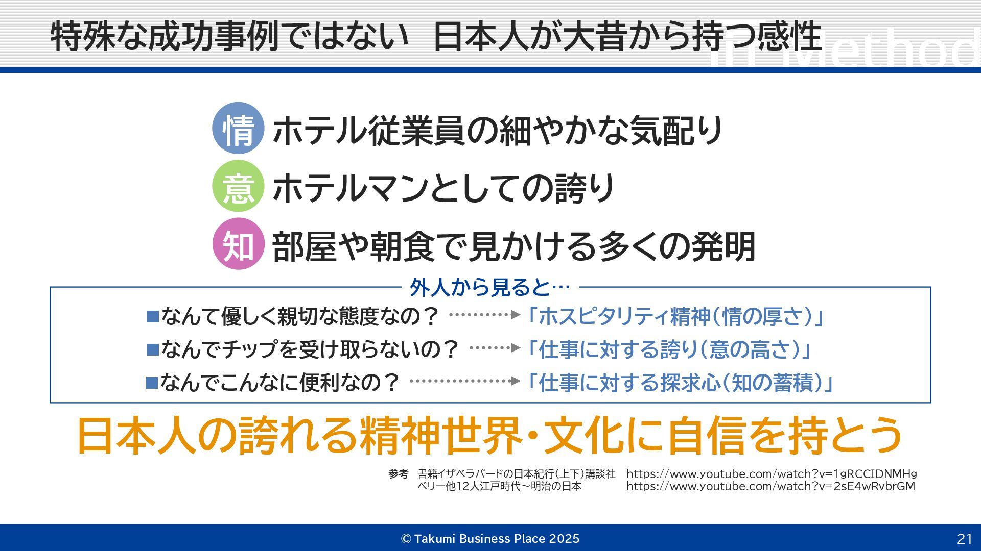 16. © Takumi Business Place 2025 特殊な成功事例ではない 日本人が大昔から持つ感性 21 日本人の誇れる精神世界・文化に自信を持とう 参考