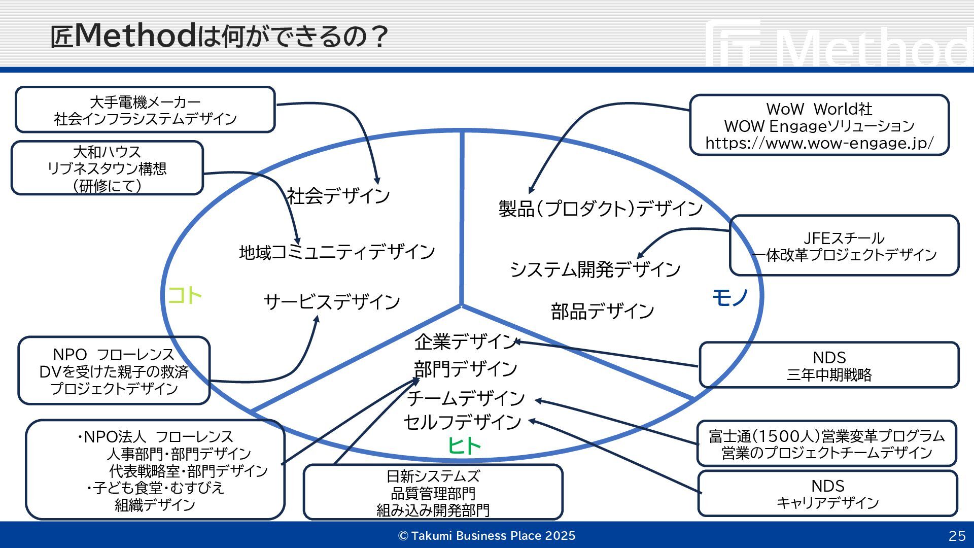 19. © Takumi Business Place 2025 匠Methodは何ができるの? 25 企業デザイン 部門デザイン チームデザイン
