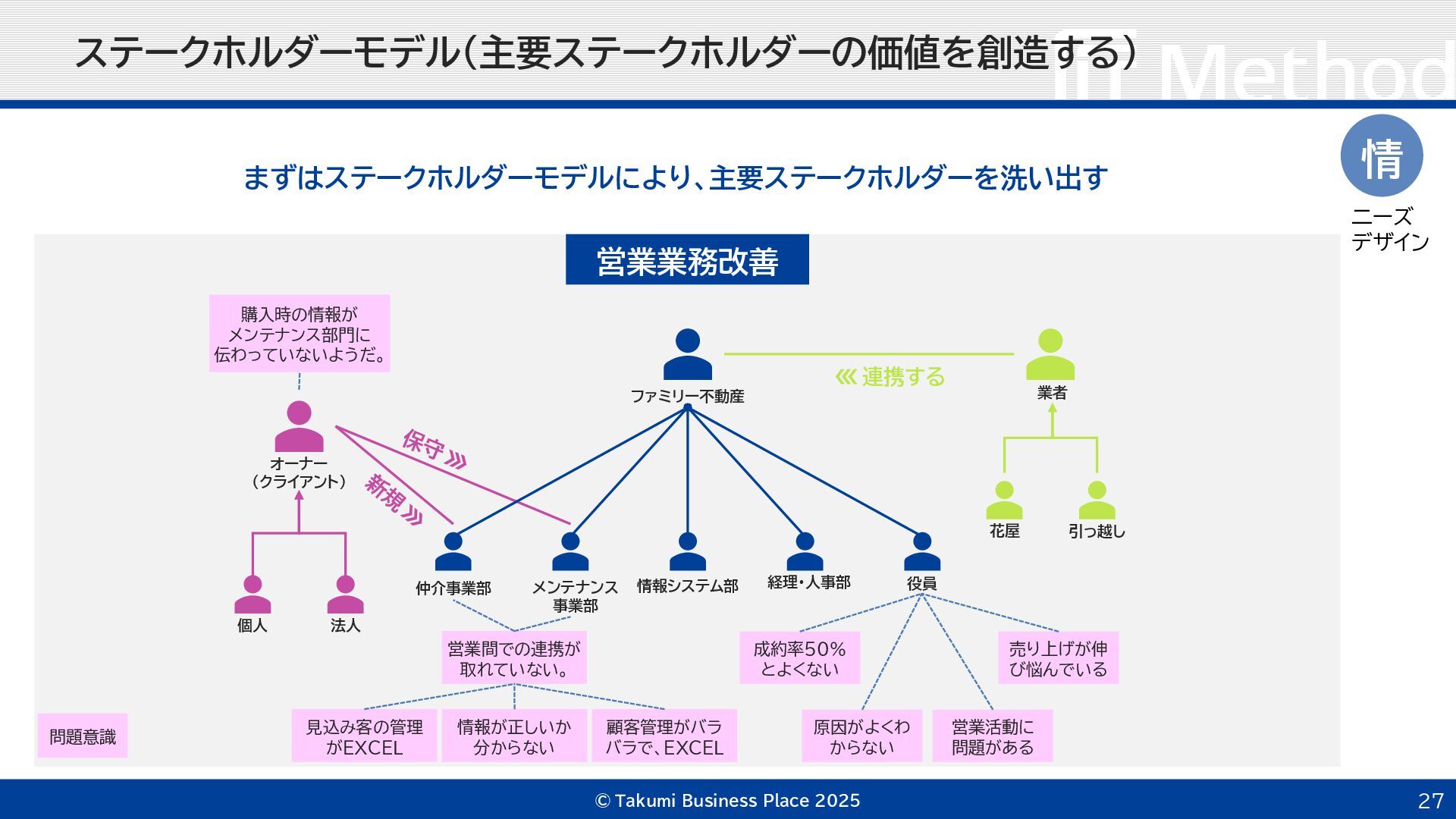 20. © Takumi Business Place 2025 ステークホルダーモデル(主要ステークホルダーの価値を創造する) 27 業者 花屋 引っ越し