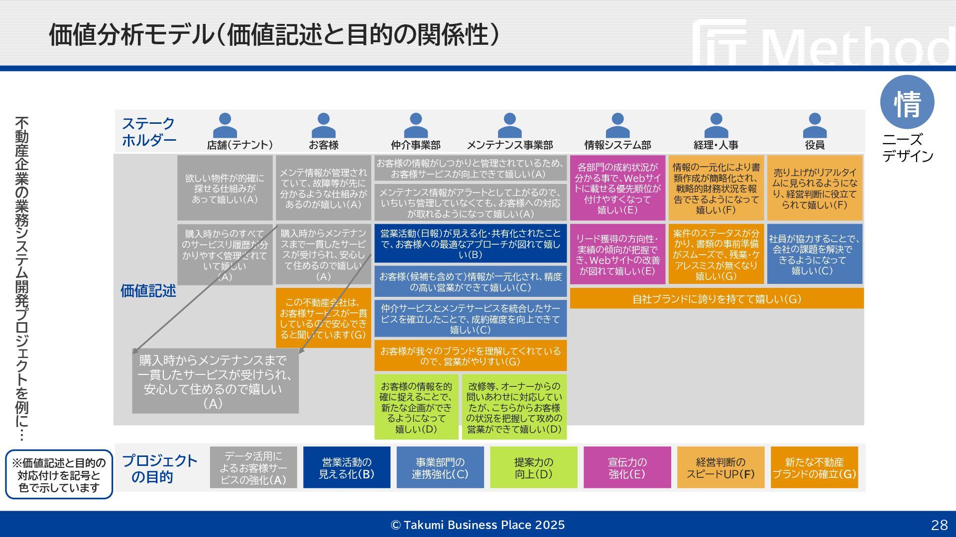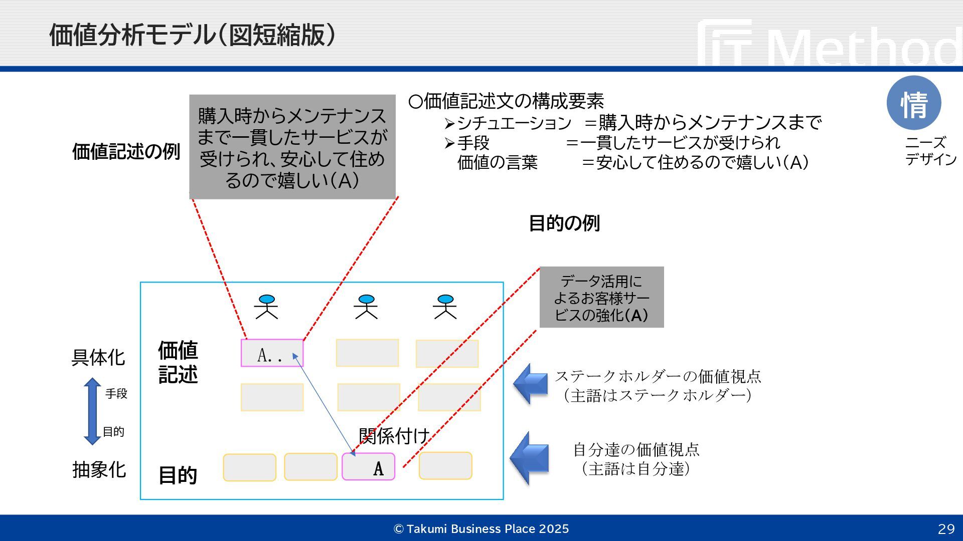 21. © Takumi Business Place 2025 価値分析モデル(価値記述と目的の関係性) 28 価値記述 ステーク ホルダー
