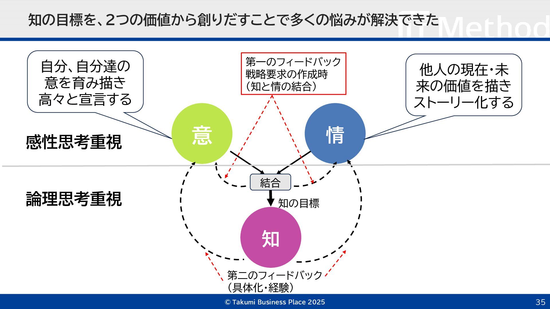 28. © Takumi Business Place 2025 知の目標を、2つの価値から創りだすことで多くの悩みが解決できた 35 知 意 情