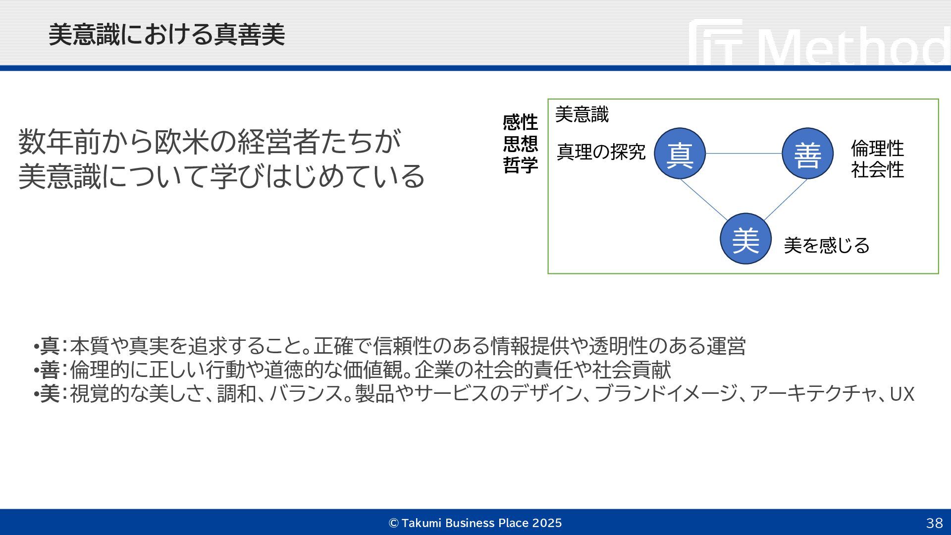 30. © Takumi Business Place 2025 美意識における真善美 38 感性 思想 哲学
