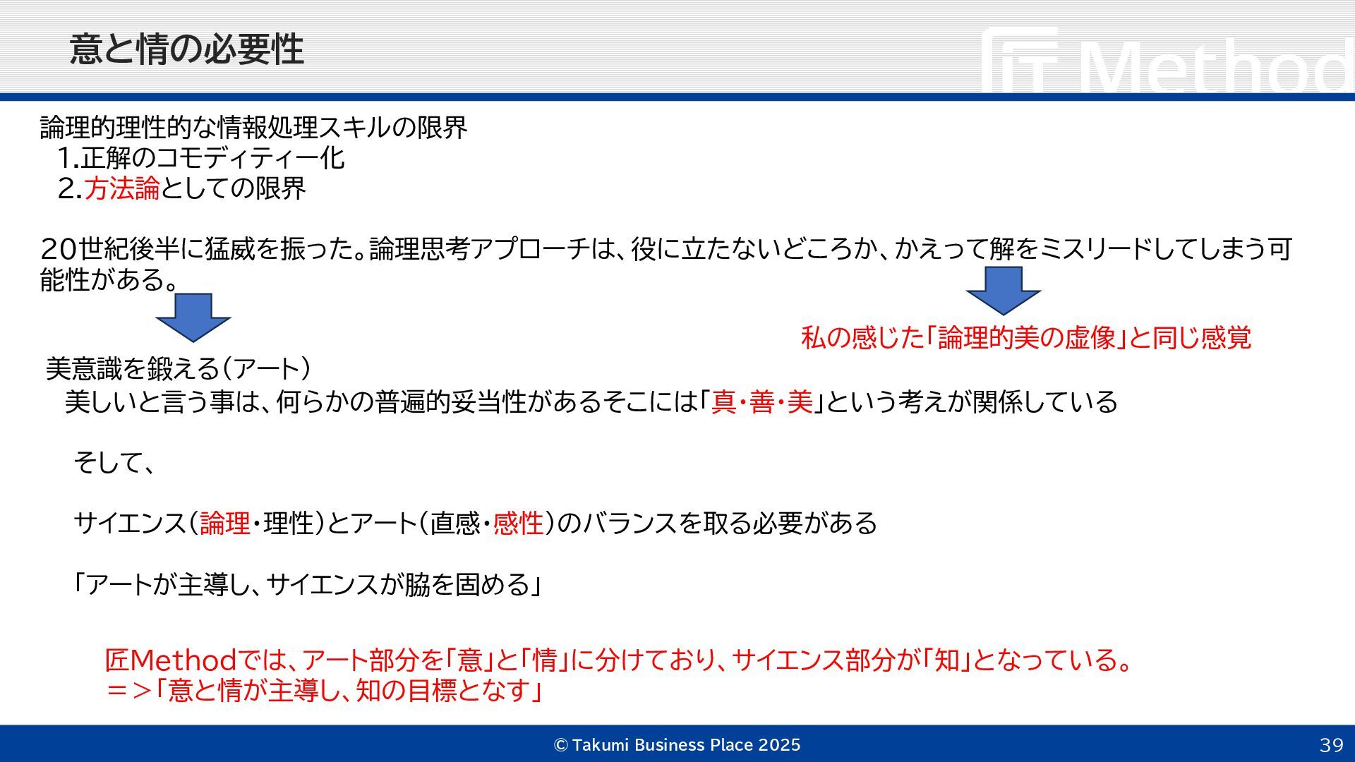 31. © Takumi Business Place 2025 意と情の必要性 39 論理的理性的な情報処理スキルの限界 1.正解のコモディティー化 2.方法論としての限界