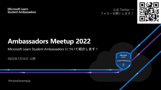 Ambassadors Meetup 2022 Microsoft Learn Student Ambassadors について紹介します! 2022年7月24日 公開