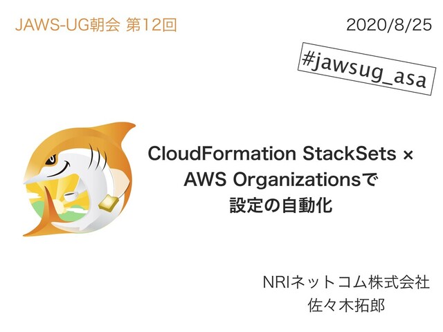 JAWS-UG朝会で発表した"CloudFormation StackSets × AWS Organizationsで設定の自動化"の発表資料です
