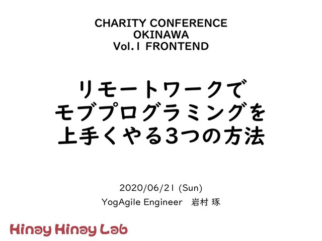 CHARITY CONFERENCE OKINAWA Vol.1 FRONTEND 2020/06/21 (Sun) YogAgile Engineer 岩村
