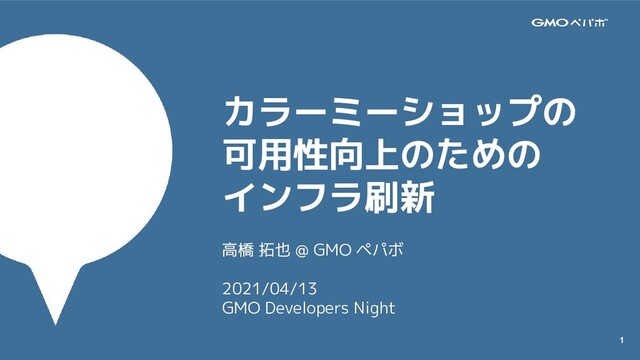 1 カラーミーショップの 可用性向上のための インフラ刷新 高橋 拓也 @ GMO ペパボ 2021/04/13