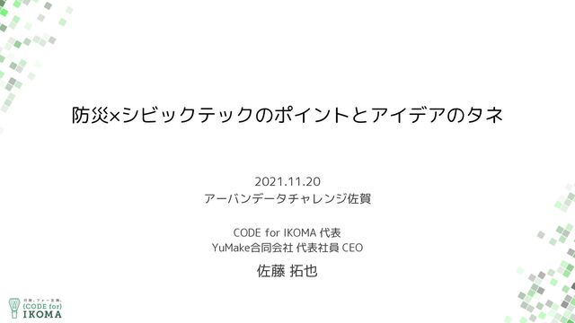 2021.11.20 アーバンデータチャレンジ佐賀 CODE for IKOMA 代表 YuMake合同会社 代表社員 CEO 佐藤