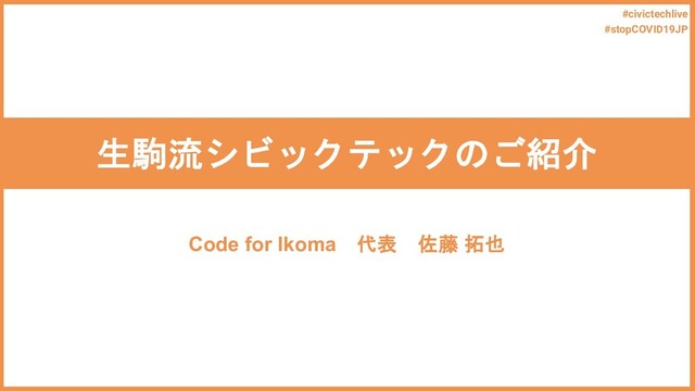 生駒流シビックテックのご紹介 #civictechlive #stopCOVID19JP Code for Ikoma 代表 佐藤 拓也