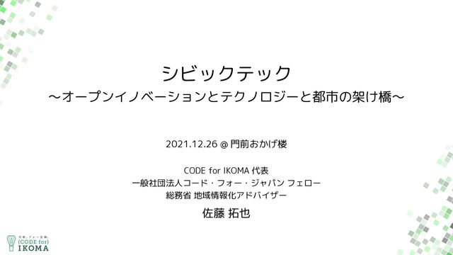 2021.12.26 @ 門前おかげ楼 CODE for IKOMA 代表 一般社団法人コード・フォー・ジャパン フェロー 総務省