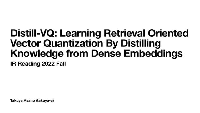 Shitao Xiao, Zheng Liu, Weihao Han, Jianjin Zhang, Defu Lian, Yeyun Gong, Qi Chen, Fan Yang, Hao Sun, Yingxia Shao, and Xing Xie. 2022. Distill-VQ: Learning Retrieval Oriented Vector Quantization By Distilling Knowledge from Dense Embeddings. In Proceedings of the 45th International ACM SIGIR Conference on Research and Development in Information Retrieval (SIGIR '22). Association for Computing Machinery, New York, NY, USA, 1513–1523. https://doi.org/10.1145/3477495.3531799
