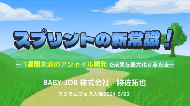 〜 1週間未満のアジャイル開発 で成果を最大化する方法〜 BABY JOB 株式会社 勝佐拓也 スクラムフェス大阪2024 6/22