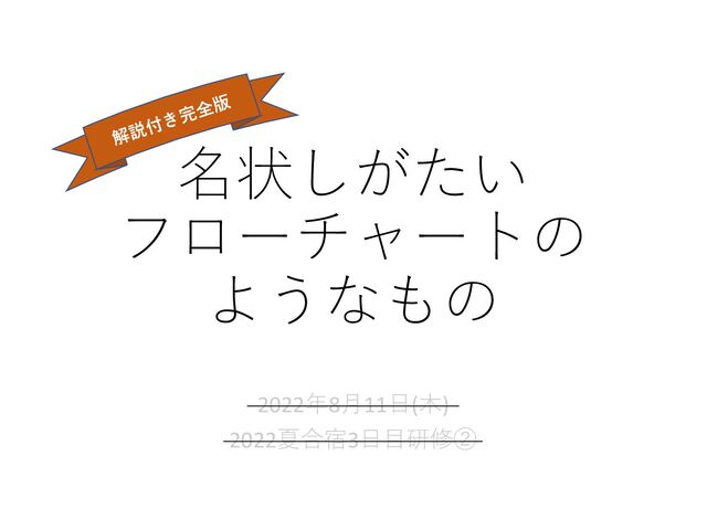 22. ふりかえり • 思いのほかみんな苦戦していたな、と思いました • 答えを聞いたら(解説を読んだら)理解ができる、としたら、⾃分が どこに詰まっていたのか考えてみましょう • 考え⽅⾃体が思いつかなかったのか、フローに表現できなかったのか • フローを⾒て、少し説明を聞いて理解・納得できるなら⼗分です