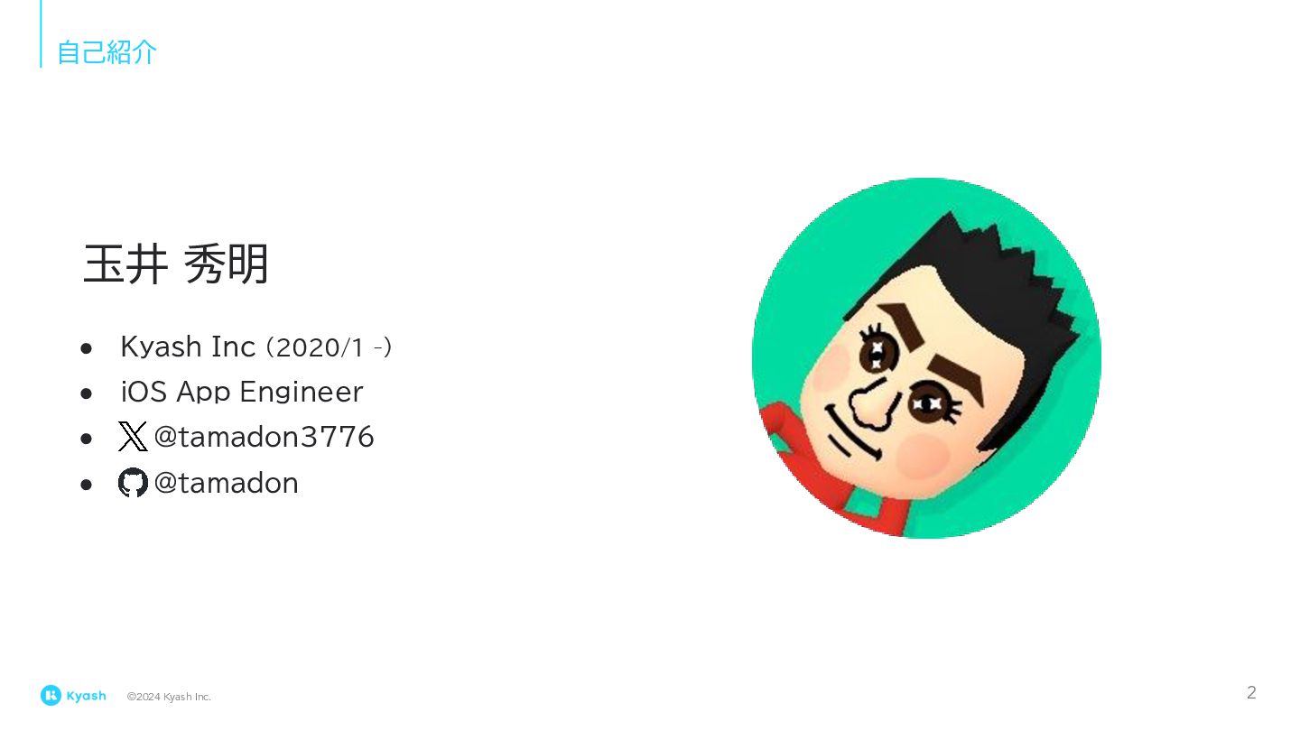 iOS App Engineer • @tamadon3776 • @tamadon 玉井 秀明 自己紹介