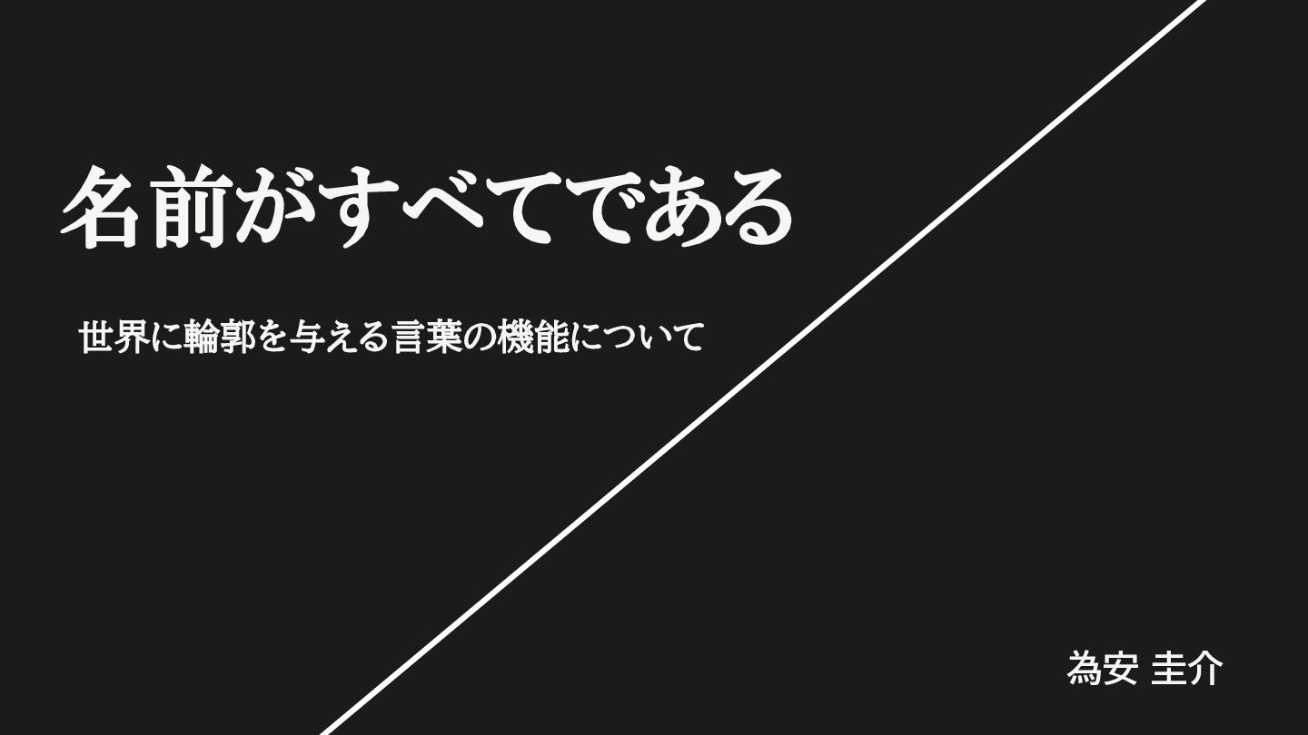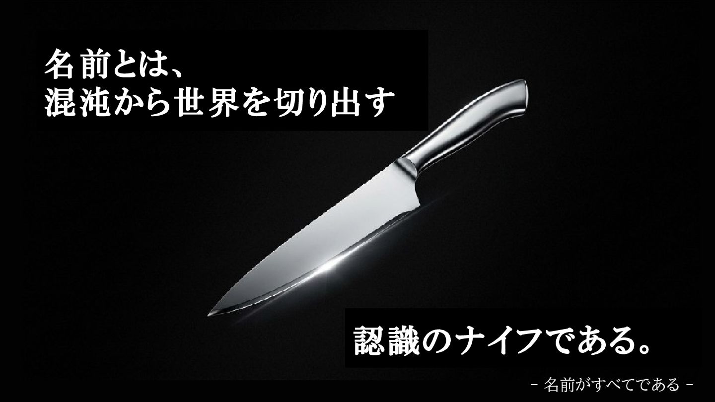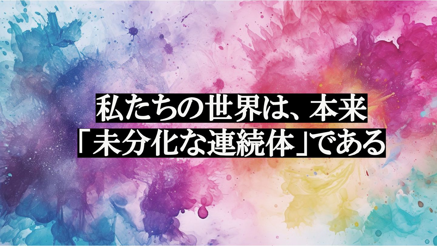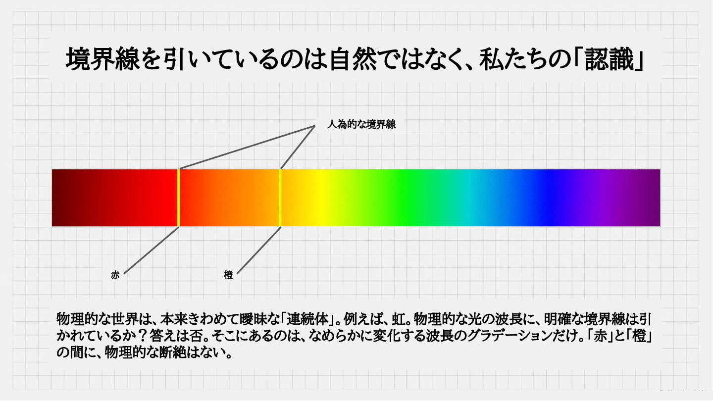 物理的な世界は、本来なめらかな連続体。そこに「名前」という境界線を引くことで初めて、私たちは混沌から「意味」を切り出し、思考可能な場所として世界を捉えることができます。