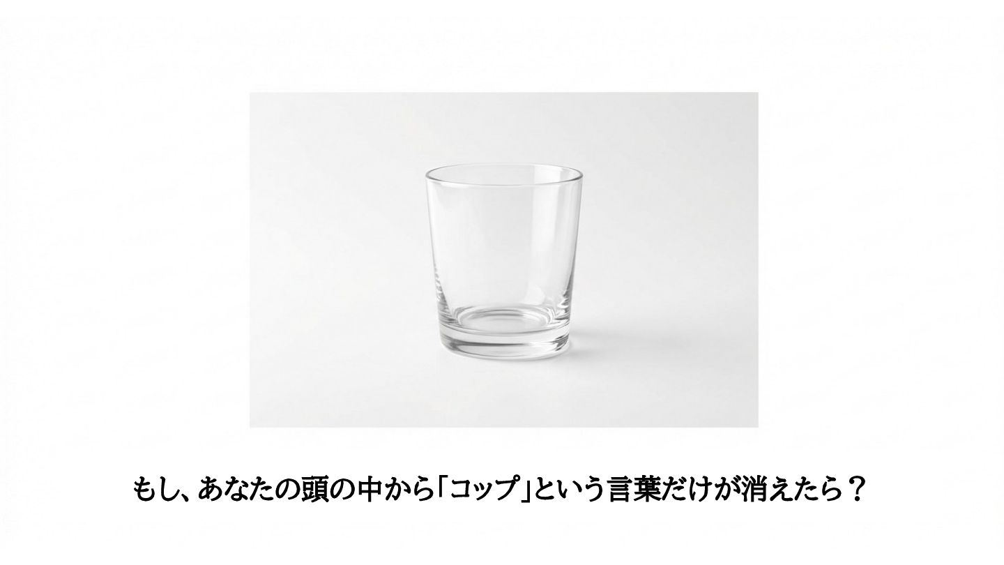 「もし、あなたの頭の中から『コップ』という言葉だけが消えたら?」