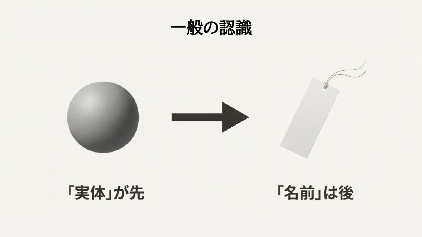 私たちは普段、世界が「そこにある」ことを疑いません。まず「実体」が先にあり、「名前」はそれを区別するための後付けのラベルに過ぎないと考えています。