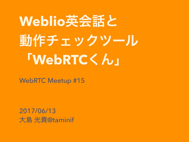 Weblioӳձͱ ಈ࡞νΣοΫπʔϧ ʮWebRTC͘Μʯ WebRTC Meetup #15 2017/06/13 େౡ ޫو@taminif
