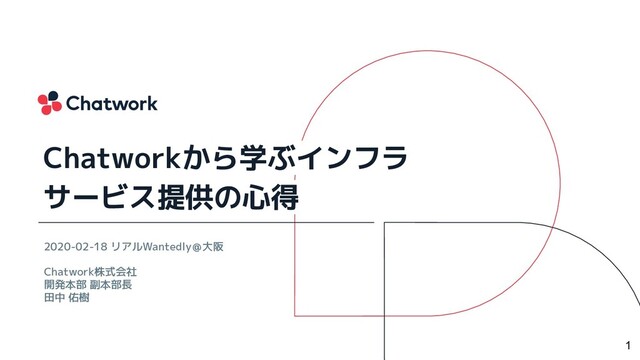 2020-02-18 リアルWantedly@大阪 Chatwork株式会社 開発本部 副本部長 田中 佑樹 Chatworkから学ぶインフラ サービス提供の心得 1