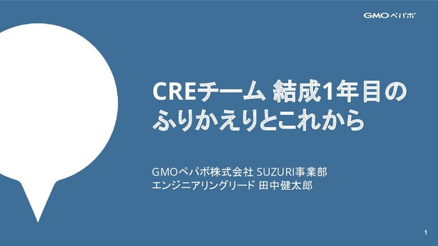 1 CREチーム 結成1年目の ふりかえりとこれから GMOペパボ株式会社 SUZURI事業部 エンジニアリングリード 田中健太郎
