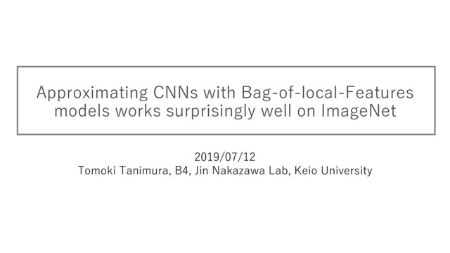 [DL-paper] ICLR2019論文.BoFとDNNを組み合わせることで解釈性の高いDNNモデル,BagNetsを提案.BagNetsを利用したDNNsにおけるモデルの分析を行った.論文(https://openreview.net/forum?id=SkfMWhAqYQ) , Code (https://github.com/wielandbrendel/bag-of-local-features-models)