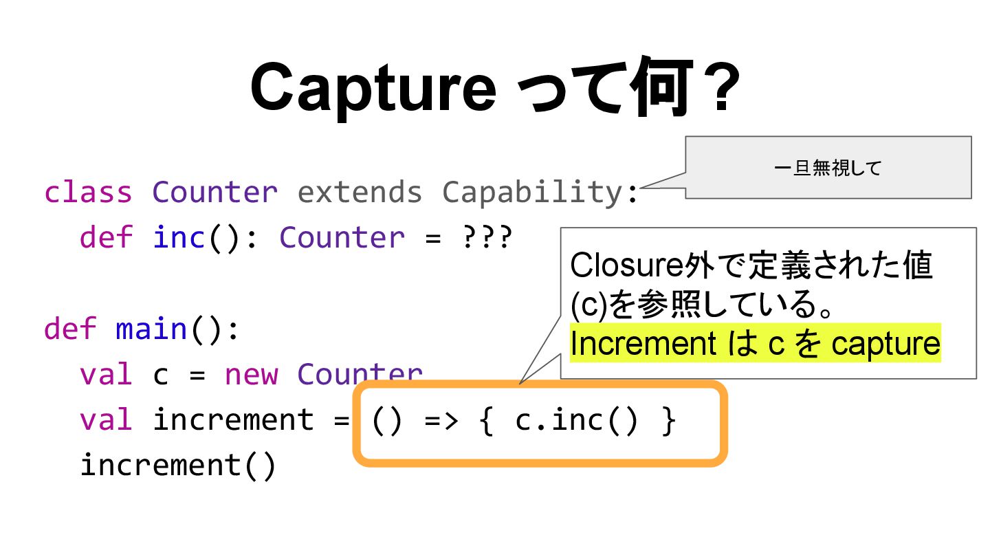 2. Capture って何? class Counter extends Capability: def inc(): Counter =