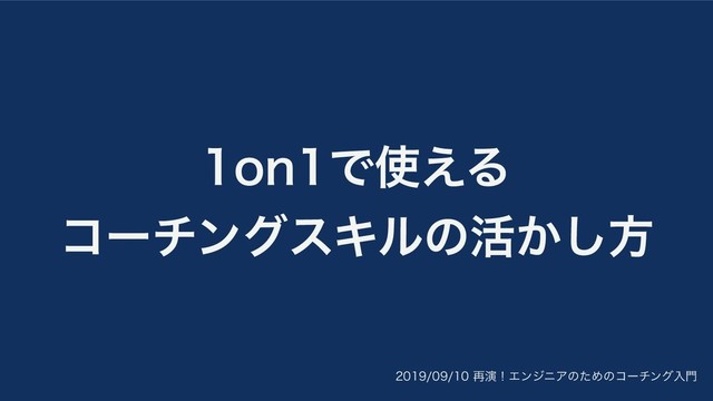 再演!1on1で使える コーチングスキルの活かし方 / How to make use of 1on1 coaching skills 2019-09-10