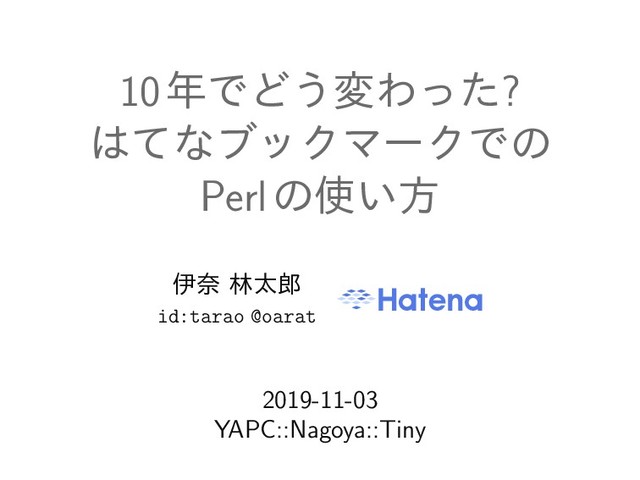 10ͰͲ͏มΘͬͨ? ͯͳϒοΫϚʔΫͰͷ Perlͷ͍ํ ҏಸ ྛଠ id:tarao @oarat 2019-11-03 YAPC::Nagoya::Tiny