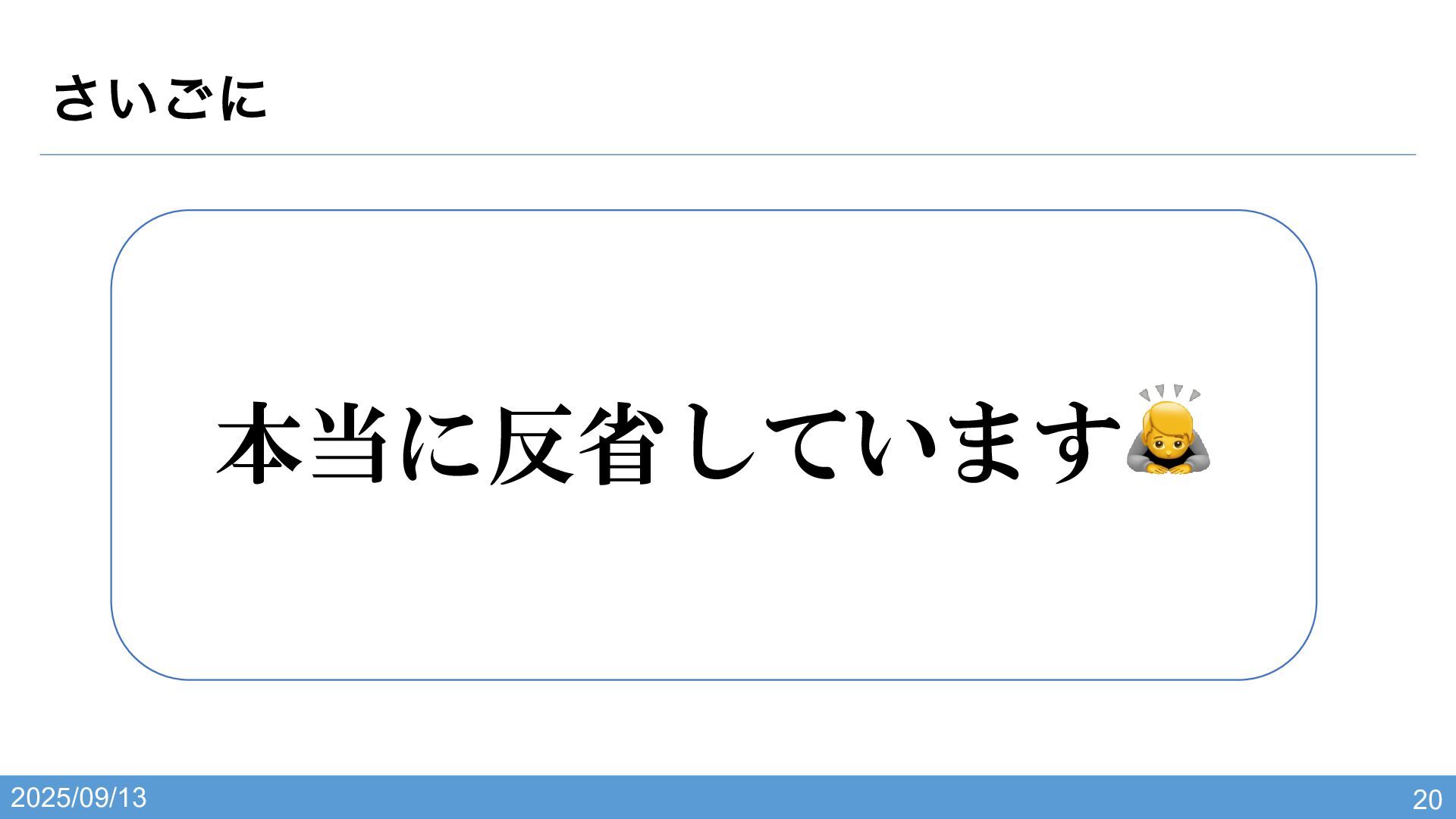 2025/09/13 ͍͞͝ʹ 20 本当に反省しています🙇