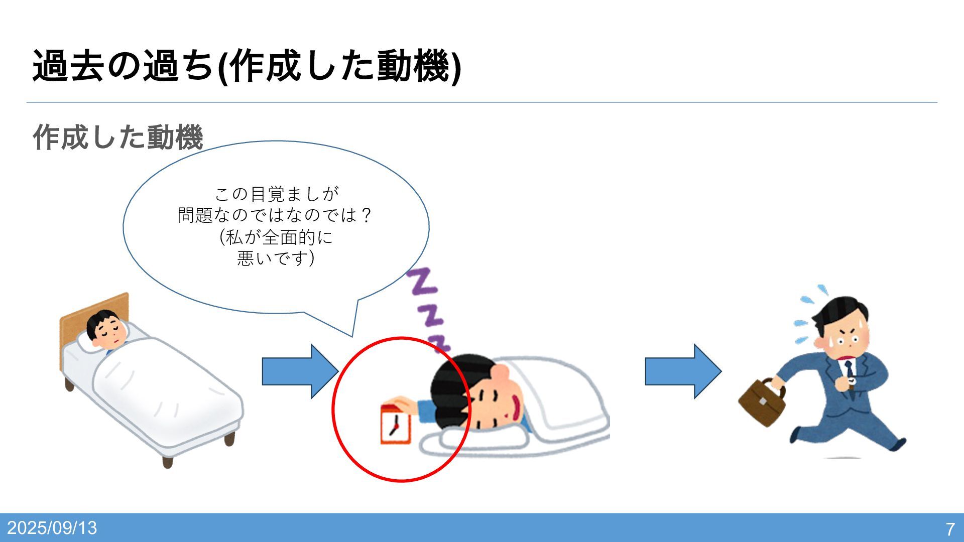 2025/09/13 ࡞ͨ͠ಈػ աڈͷաͪ(࡞ͨ͠ಈػ) 7 この⽬覚ましが 問題なのではなのでは? (私が全⾯的に 悪いです)