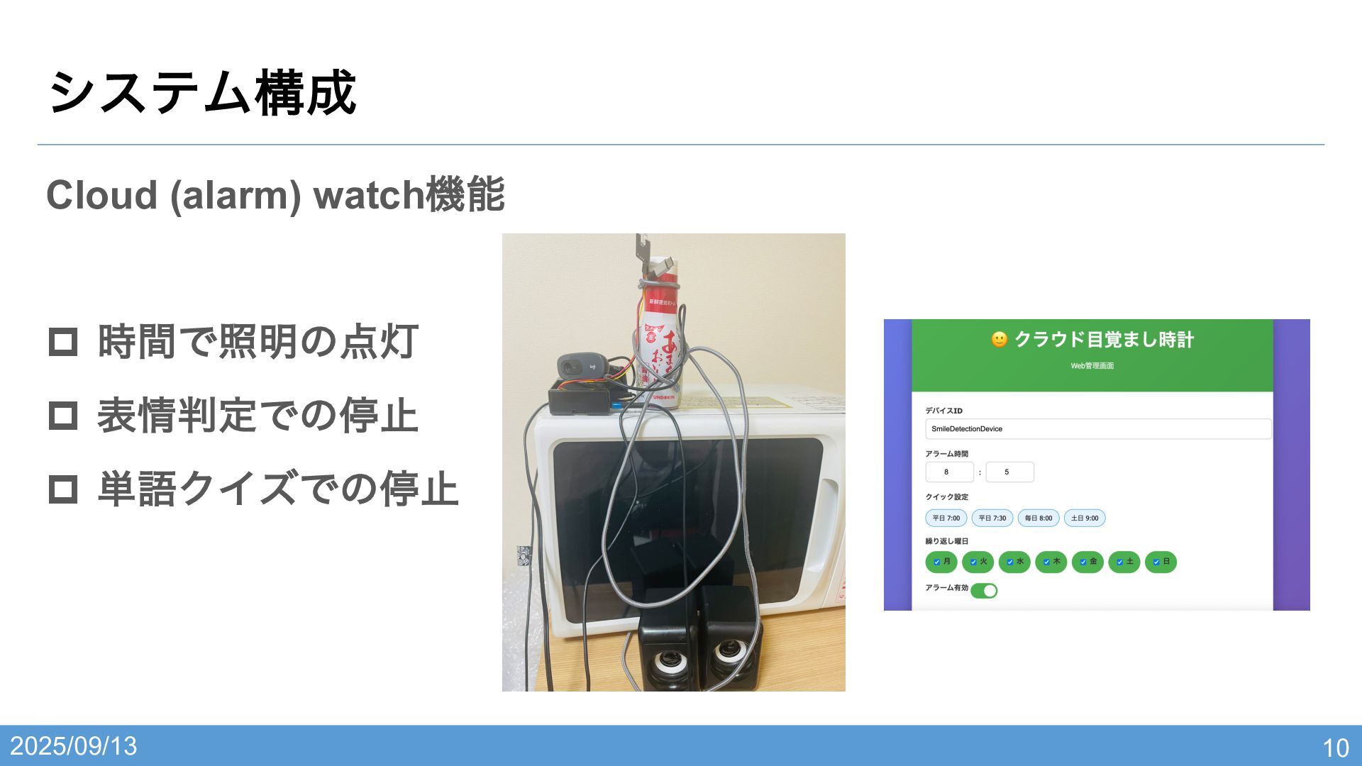 2025/09/13 Cloud (alarm) watchػೳ p ࣌ؒͰর໌ͷ౮ p දఆͰͷఀࢭ p ୯ޠΫΠζͰͷఀࢭ