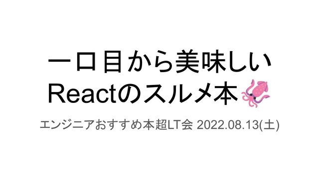一口目から美味しい Reactのスルメ本🦑 エンジニアおすすめ本超LT会 2022.08.13(土)