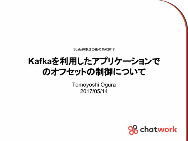 Kafkaを利用したアプリケーションで のオフセットの制御について Tomoyoshi Ogura 2017/05/14 Scala将軍達の後の祭り2017