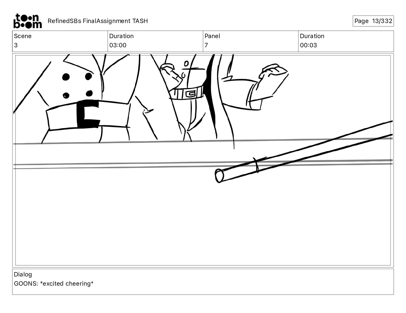 Dialog GOONS: *excited cheering* RefinedSBs FinalAssignment TASH Page 13/332