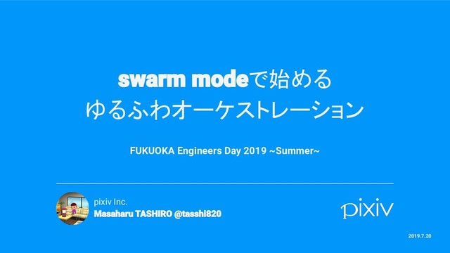 FUKUOKA Engineers Day 2019 ~Summer~の登壇資料。 Dockerの提供するコンテナオーケストレーション機能「swarm mode」の紹介と弊社での活用事例についての発表です。 コンテナオーケストレーションツールはKubernetesが有名ですがミニマムなクラスタ環境であればswarmでも簡単に実現できるという話をしました。 登壇記事はこちら https://inside.pixiv.blog/tasshi/7374