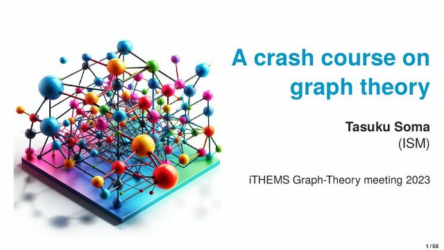 pair of vertices and edges, usually written as G = ( V vertex set , E edge set ) In this talk, we only consider finite graphs, i.e., |V |, |E| < +∞. 6 / 56
