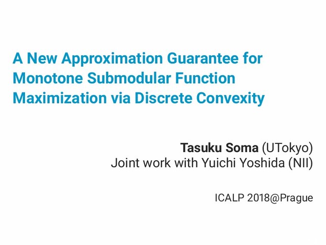 Yi : vector after t swaps (t = , , ... ). z = x, zt+ − zt has at most positive coordinate and at most negative. E[zt+ | zt] = zt. Lemma ([Chekuri–Vondrák–Zenklusen ]) zt: vector random process satisfying the adove conditions G: multilinear extension of monotone submod func =⇒ E[G(zt)] ≥ G(x) (t = , , ... ). /