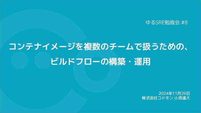 コンテナイメージを複数のチームで扱うための、 ビルドフローの構築・運用 2024年11月29日 株式会社コドモン 小西達大 ゆるSRE勉強会 #8