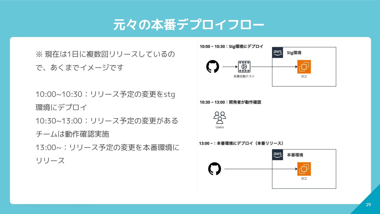 29 CONFIDENTIAL - © 2022 CoDMON Inc. 29 元々の本番デプロイフロー ※