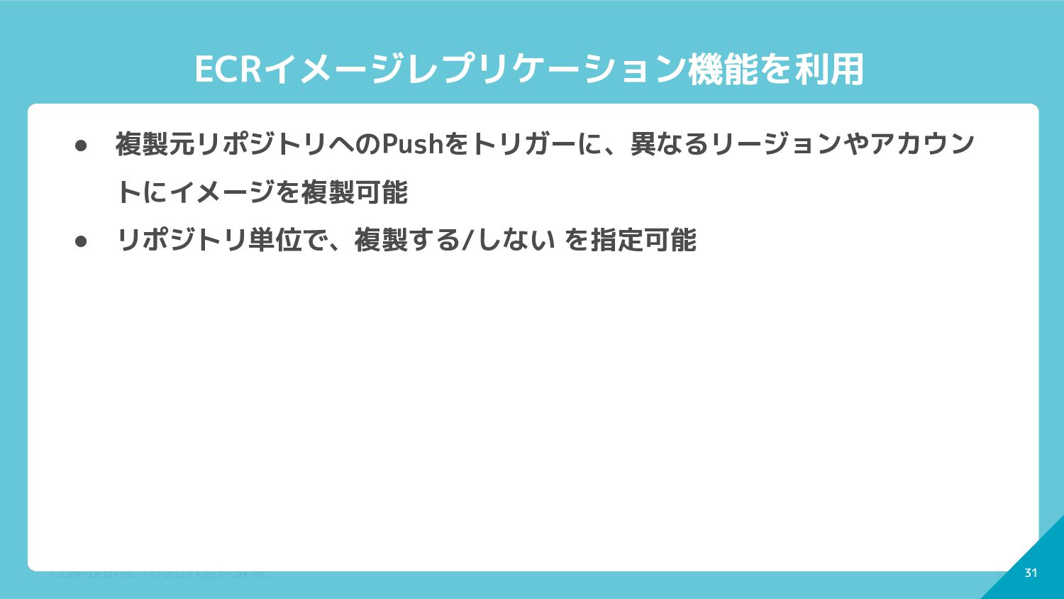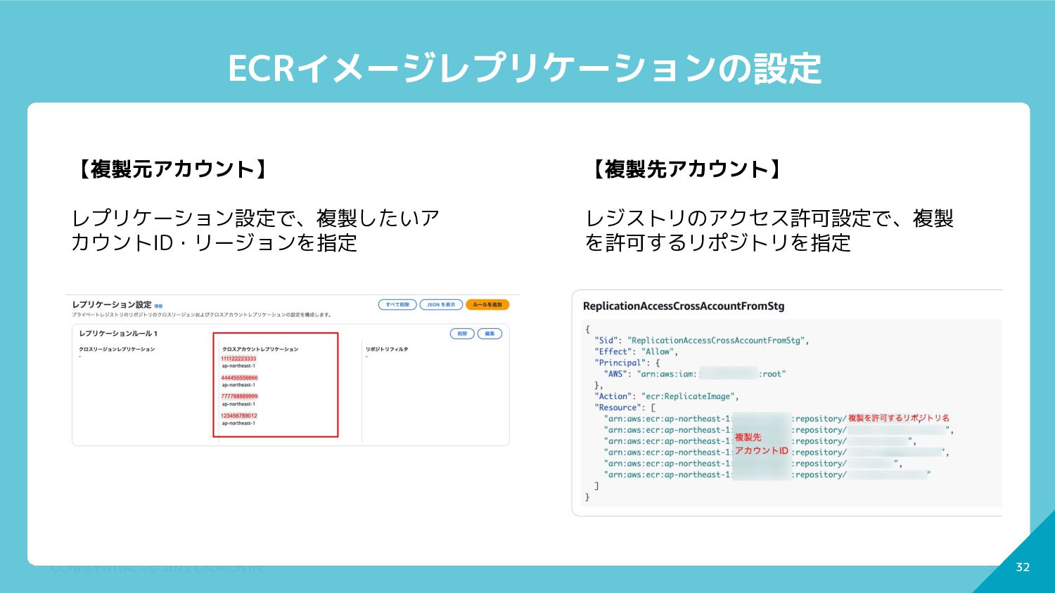 32 CONFIDENTIAL - © 2022 CoDMON Inc. 32 ECRイメージレプリケーションの設定 【複製元アカウント】