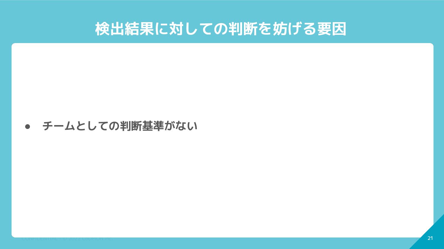 21 CONFIDENTIAL - © 2022 CoDMON Inc. 21 検出結果に対しての判断を妨げる要因 •