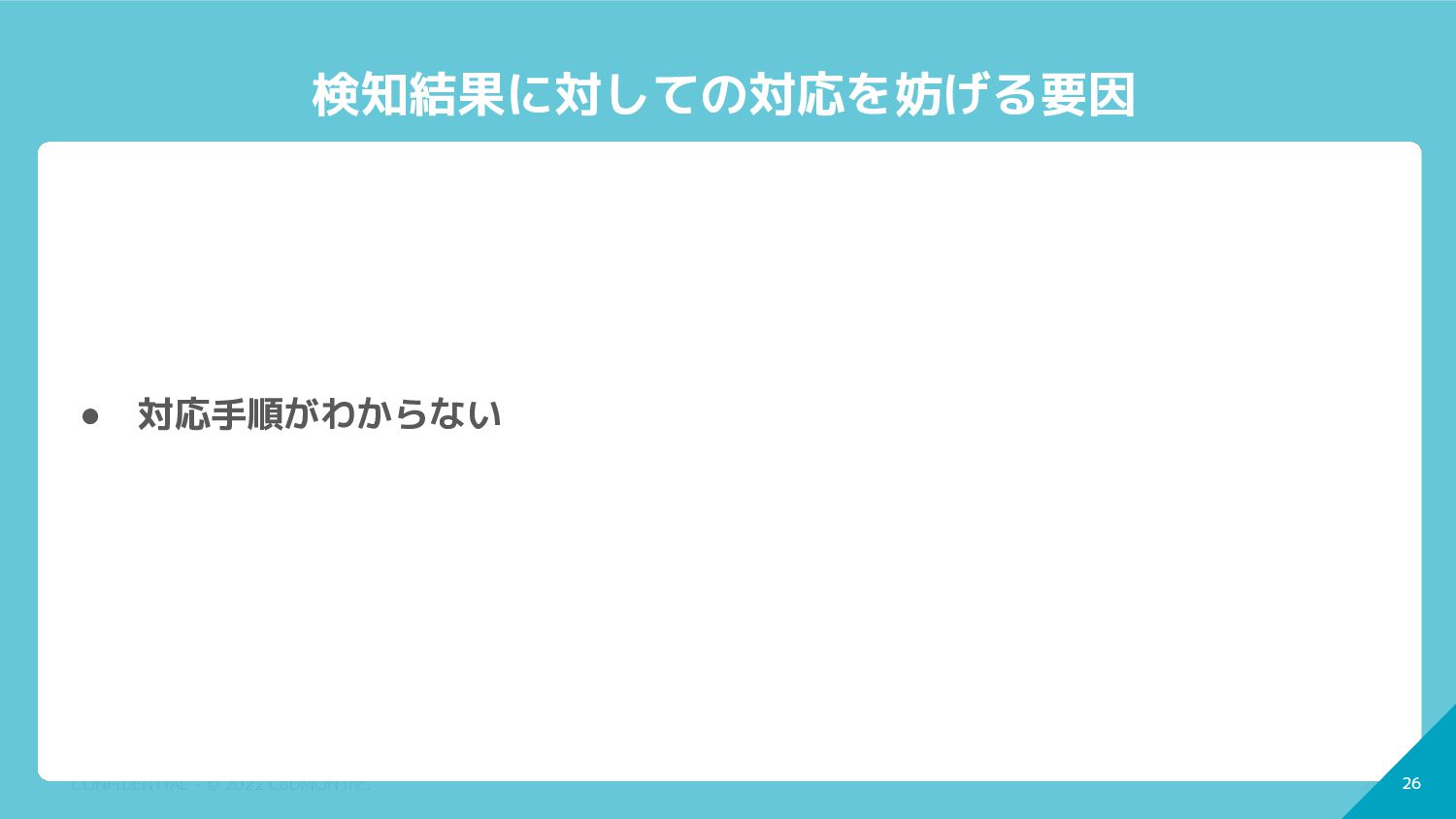 26 CONFIDENTIAL - © 2022 CoDMON Inc. 26 検知結果に対しての対応を妨げる要因 •