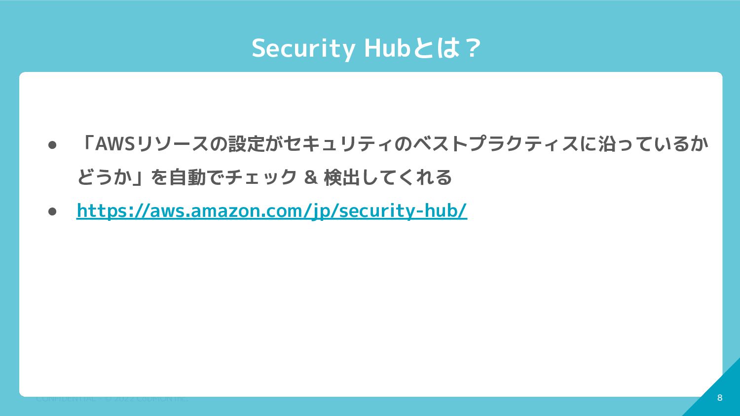 8 CONFIDENTIAL - © 2022 CoDMON Inc. 8 Security Hubとは?