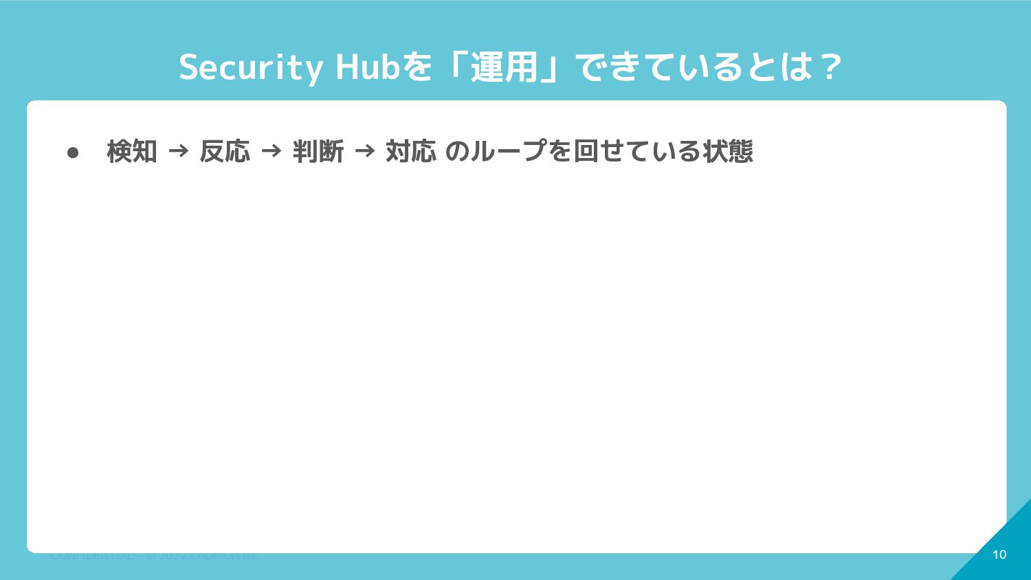 10 CONFIDENTIAL - © 2022 CoDMON Inc. 10 Security Hubを「運用」できているとは?