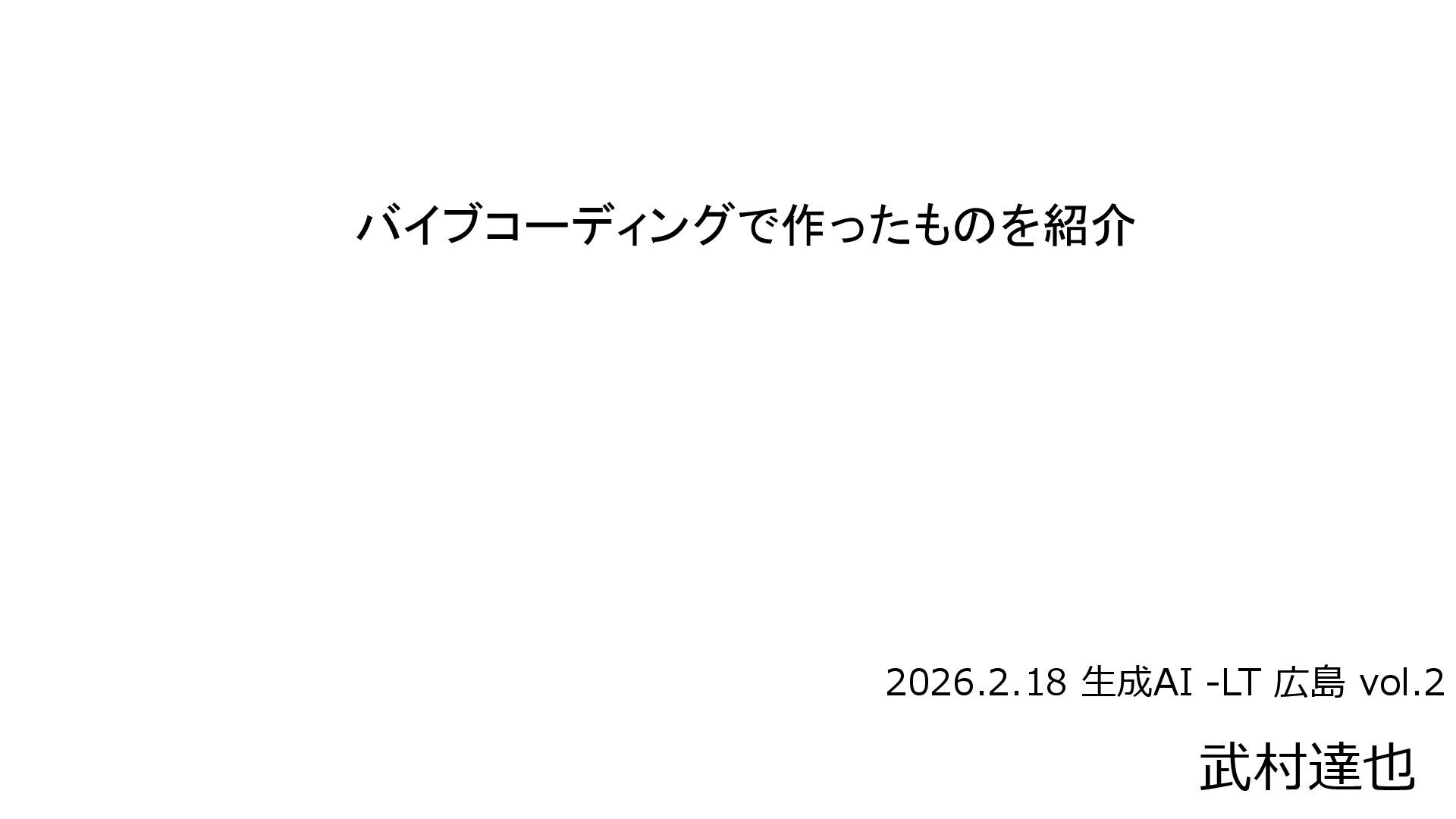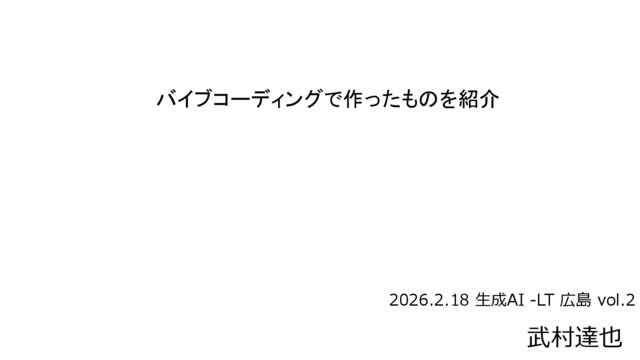 バイブコーディングで作ったものを紹介 武村達也 2026.2.18 生成AI -LT 広島 vol.2