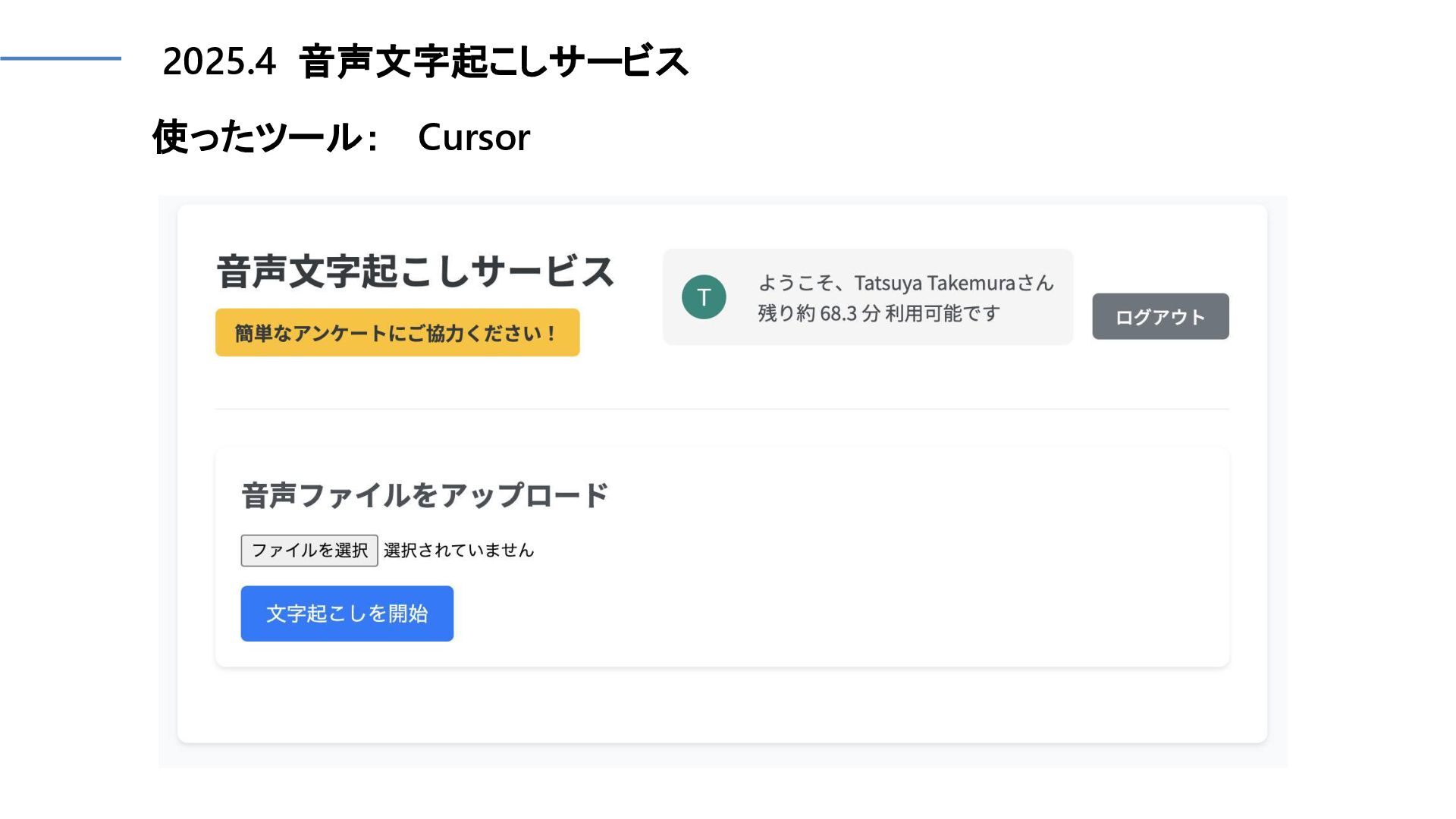2025.4 音声文字起こしサービス 使ったツール: Cursor