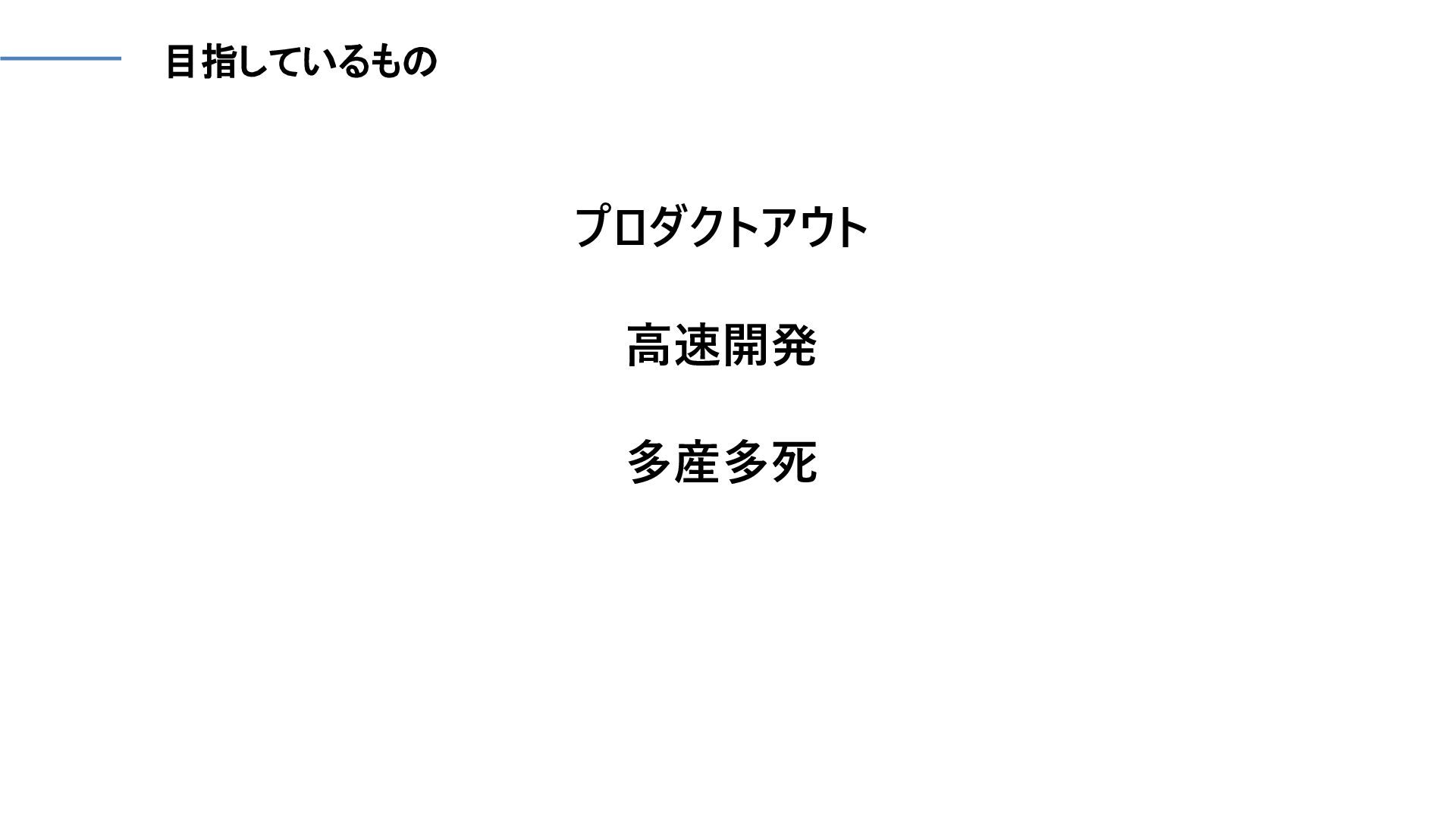 目指しているもの プロダクトアウト 高速開発 多産多死