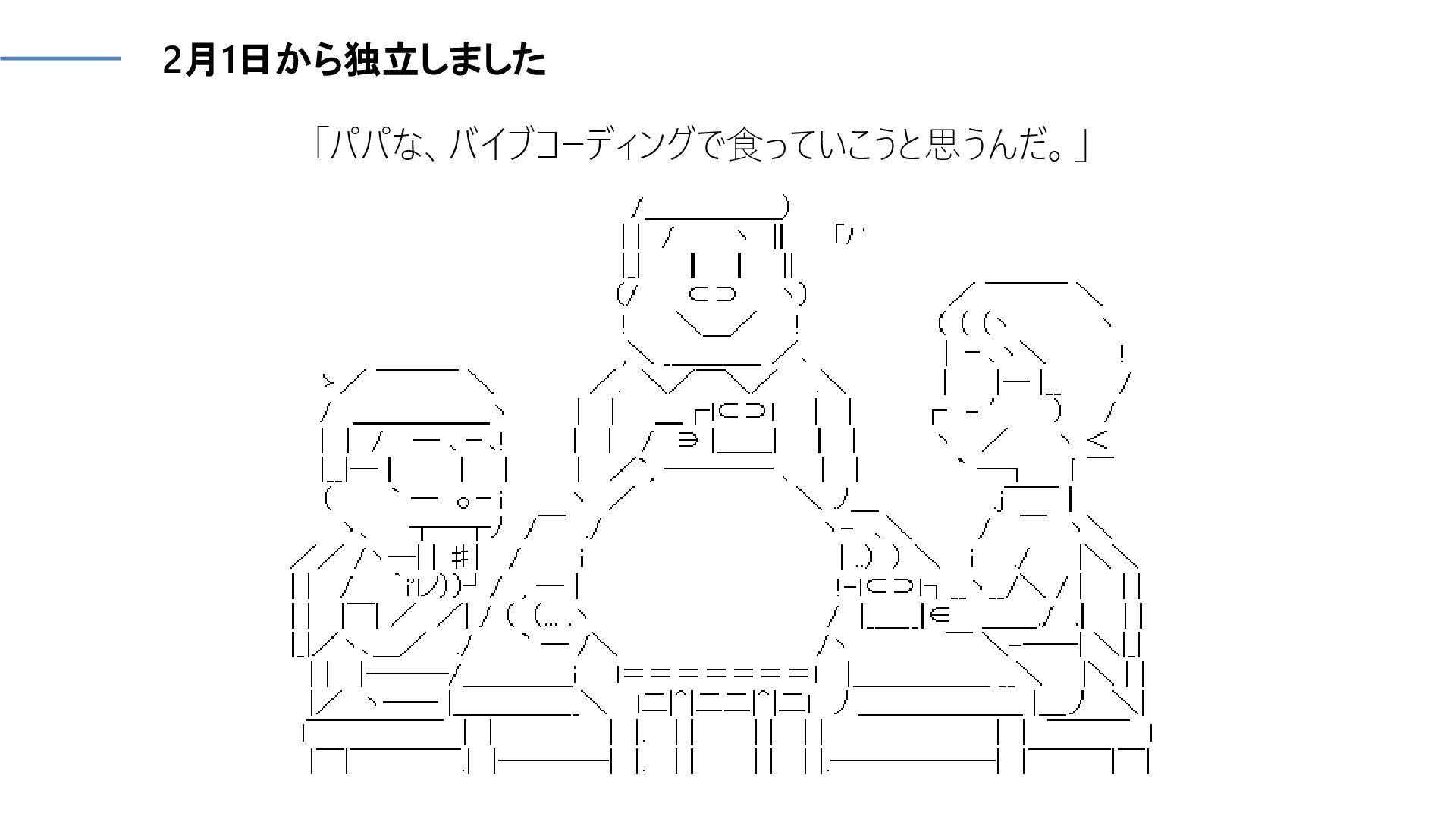 「パパな、バイブコーディングで食っていこうと思うんだ。」 2月1日から独立しました